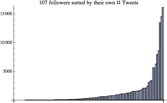 As for participation inequality, let’s look at the number of tweets that those (107) followers send out.