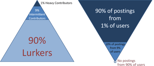 “In most online communities, 90% of users are lurkers who never contribute, 9% of users contribute a little, and 1% of users account for almost all the action.”