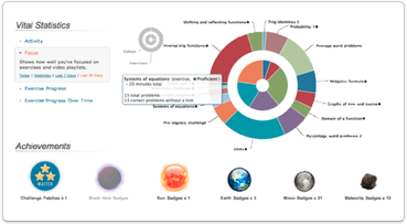 The latter form of interactivity may be among the most useful. The system records how often you take tests, how long it takes you to answer, how often you get the answers right, etc. All this can then be plotted in some sort of dashboard. Both for yourself as individual student, or for an entire class if you are a coach. This shows at a glance where you or your students are struggling and how far along they have progressed.