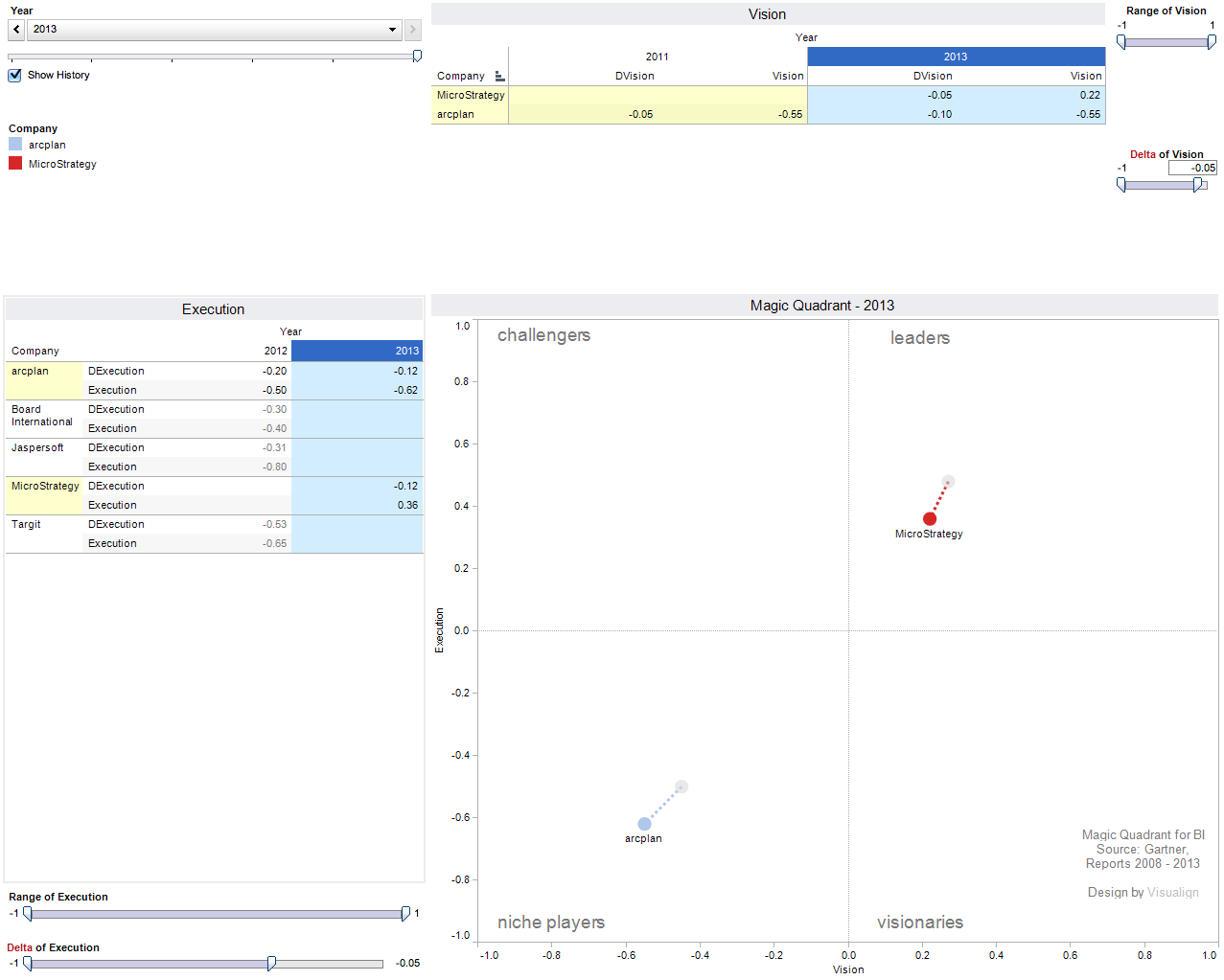 With the dashboard at hand, you can also go back and do similar queries not just for the current year 2013, but any of the five previous years. For example, who has moved to the top-left – improved execution at the expense of reduced vision – over the years?