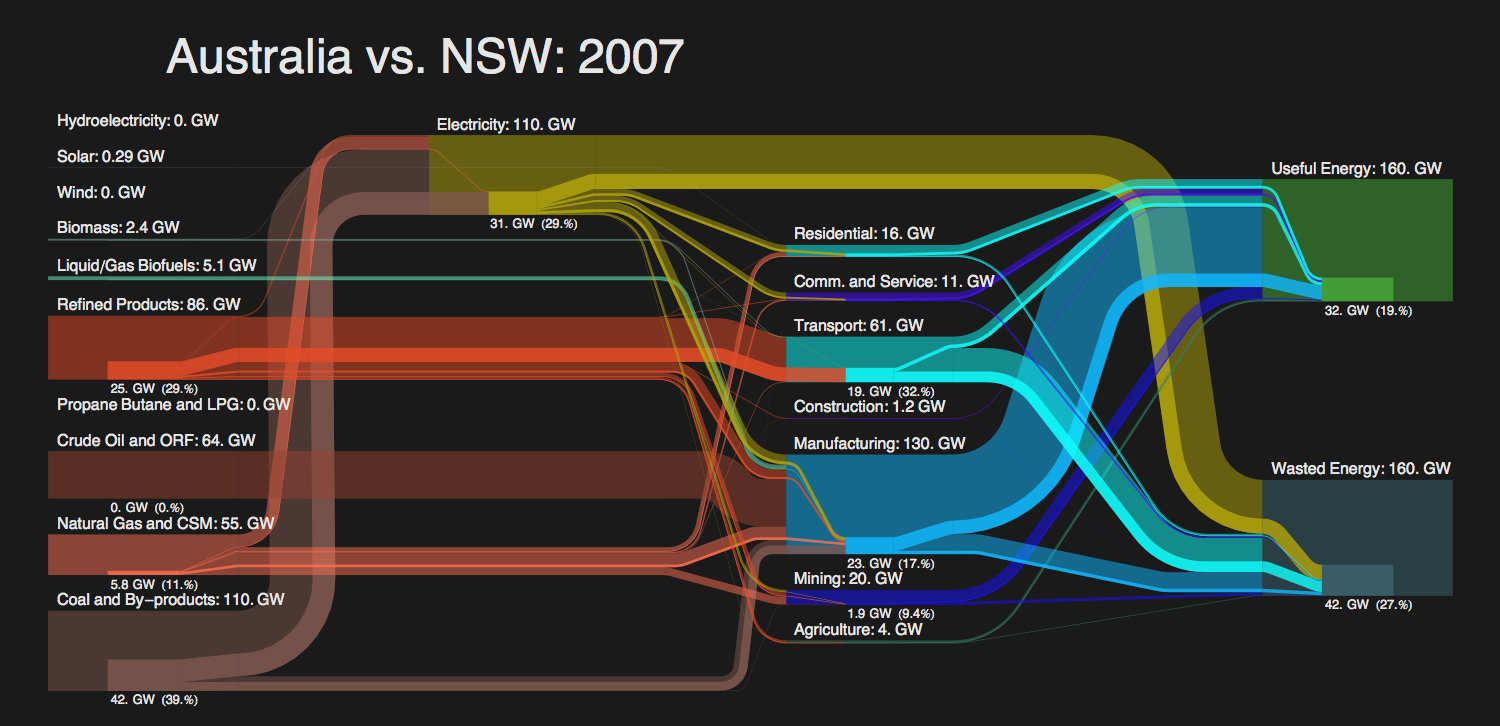 Note the sub-flows within each stream to compare a part (New South Wales) against the whole (Australia).