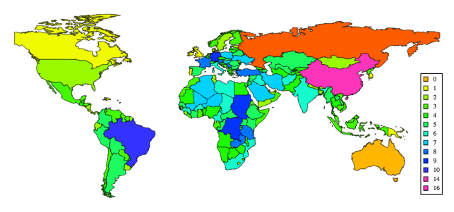 In this day and age one is spoiled by interactive charts such as the Bubble-Charts of Gapminder’s Trendalyzer. Wouldn’t it be nice to have an interactive chart where you could set the Age intervals and perhaps filter in various ways (geographic regions, GDP, population, etc.) and then see the dynamic change of such colored world-maps over time? How much more insight would this convey about the changing demographics and relative sizes of age cohorts? Or perhaps display interactive population pyramids such as those found here by Jorge Camoes?